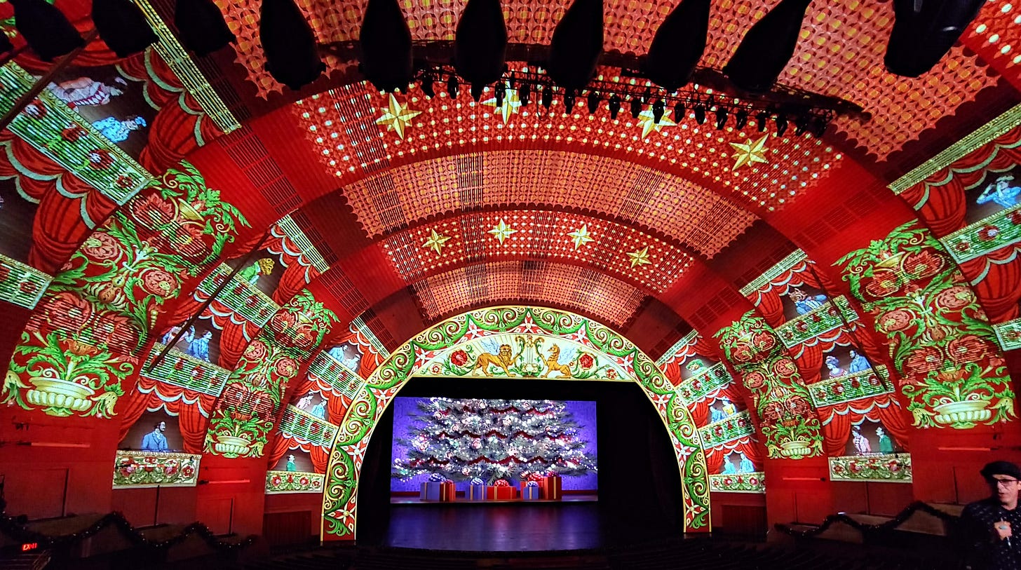 Interior shot for the “Christmas Spectacular Starring the Radio City Rockettes” with the photograph showing the projections that covered the Music Hall's walls. A collaboration with Intel. 2018 image via techwelike.com.