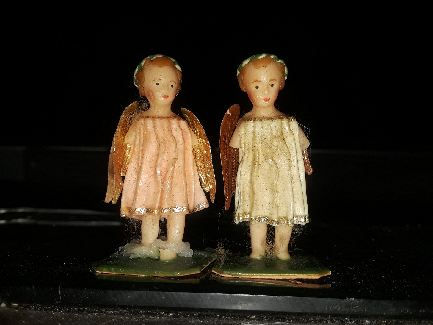 Wax angels with gold wings. 1950s. Austrian. Bought by Genevieve Perry in Vienna. Collection of Sarah B Guest Perry.