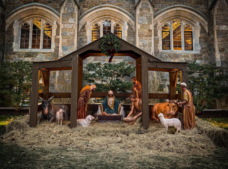 "And you will have joy and gladness, and many will rejoice at his birth." 2026 Christmas creche, Boston College, Chestnut Hill, Massachusetts. Where my late father taught for many years. Madeleine Miclat '28 chickflickphotography, photographer. © Boston College. Taken from their Instagram.