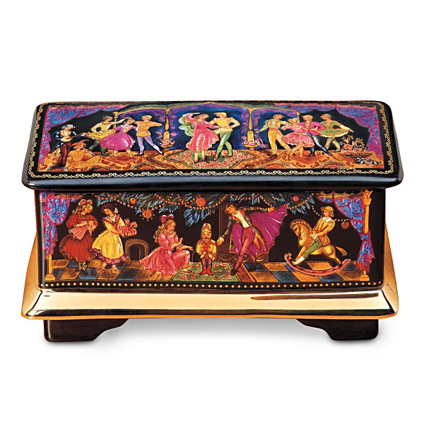 The Nutcracker music box. Contemporary. American. Porcelain with gold and jewel tone accents. Plays the Dance of the Sugarplum Fairy. Bradford Exchange, maker. via bradfordexchange.com