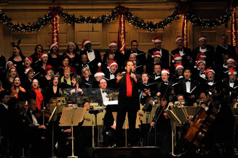 Concert with the Boston Pops, streamed December 13, 2020. Boston Pops Orchestra and the Tanglewood Festival Chorus, Keith Lockhart, conductor. Justin Hopkins, baritone. Stu Rosner, photographer. Image via classicalwcrb.org.