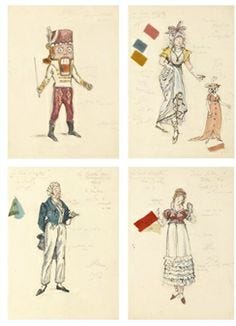 Five costume designs for a 1937 production of Tchaikovsky's ballet “The Nutcracker.” 1937. Russian. Alexandre Benois, maker (1870-1937). via mutualart.com.