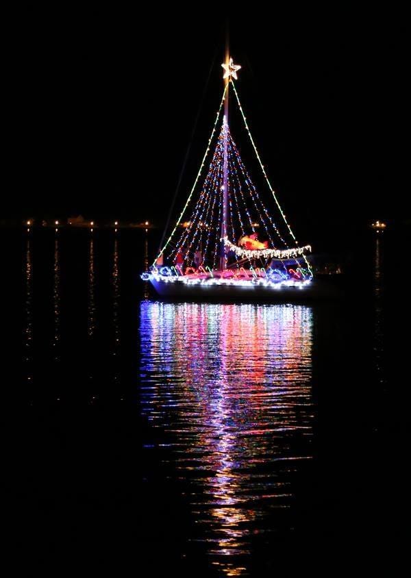Boat participating in the Coastal Christmas Flotilla, a floating holiday parade in North Carolina. 2019. via Facebook